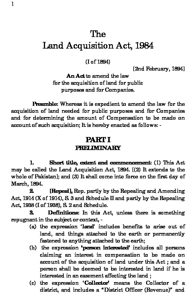 Land Acqusition Act 1984