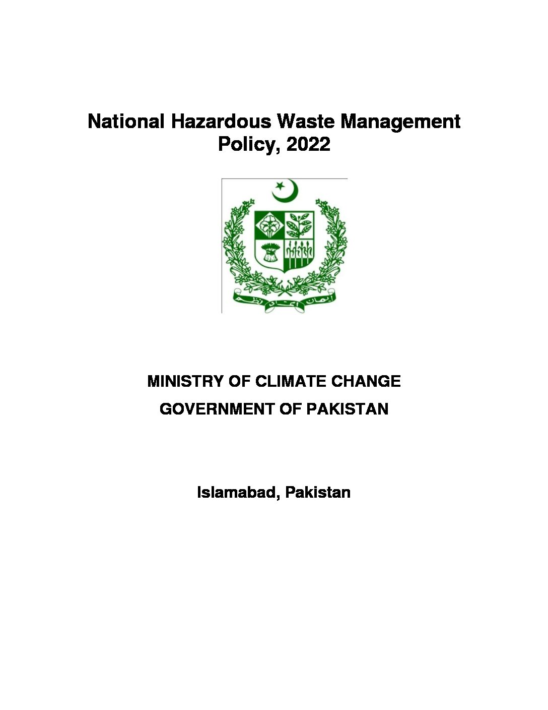National Hazardous Waste Management Policy 2022