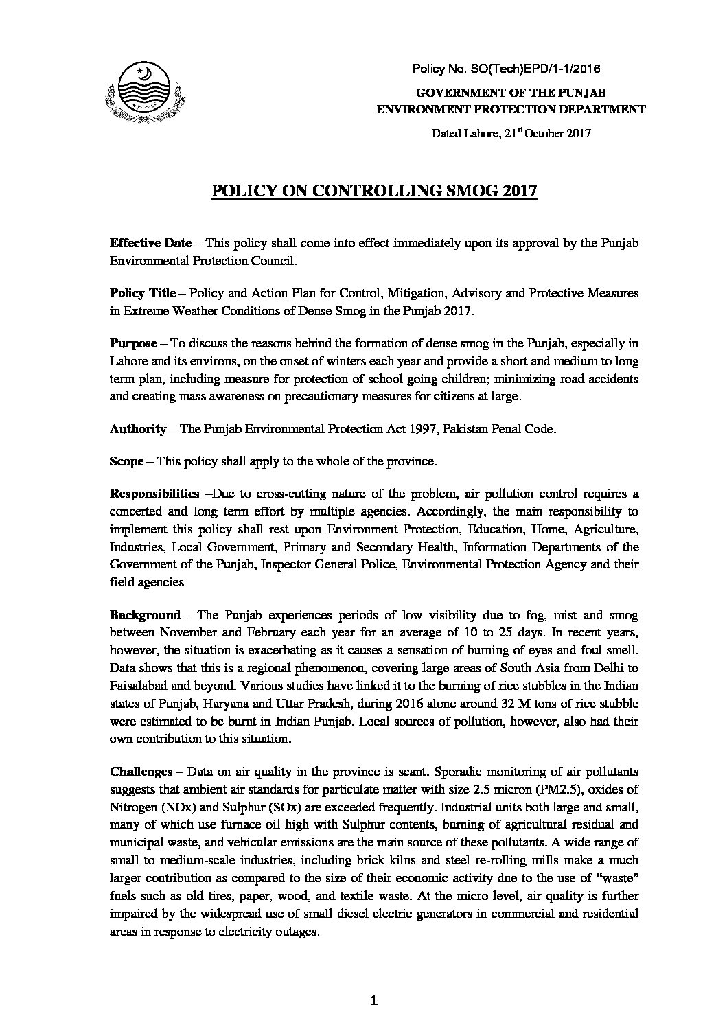 Policy on Controlling Smog