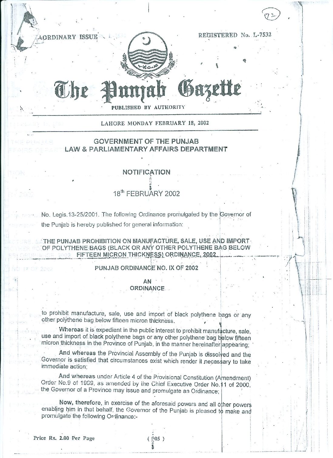 Punjab Polythene Bag Ordinance