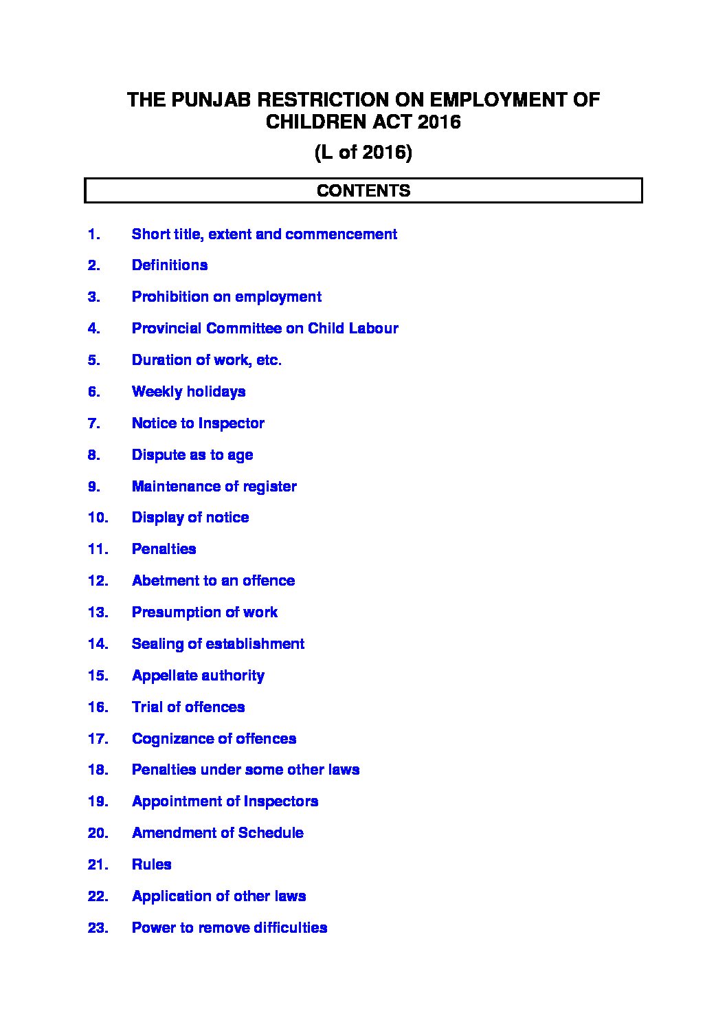 Restriction on Employment of Children Act 2016